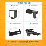 امتلك استوديو تصوير متنقل! طقم Plokama PK-771 يحتوي على كل ما تحتاجه للبدء في صناعة المحتوى: حامل ثلاثي (Tripod)، ميكروفون احترافي، كشاف إضاءة قوي، وريموت بلوتوث للتحكم عن بعد.