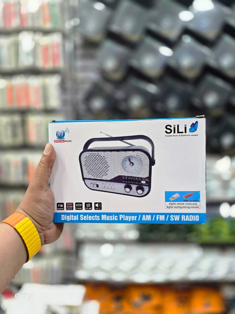 راديو كلاسيكي حديث من SiLi – يدعم بلوتوث، USB، كارت ميموري، وتشغيل FM/AM/SW، بصوت قوي وبطارية قابلة للشحن.